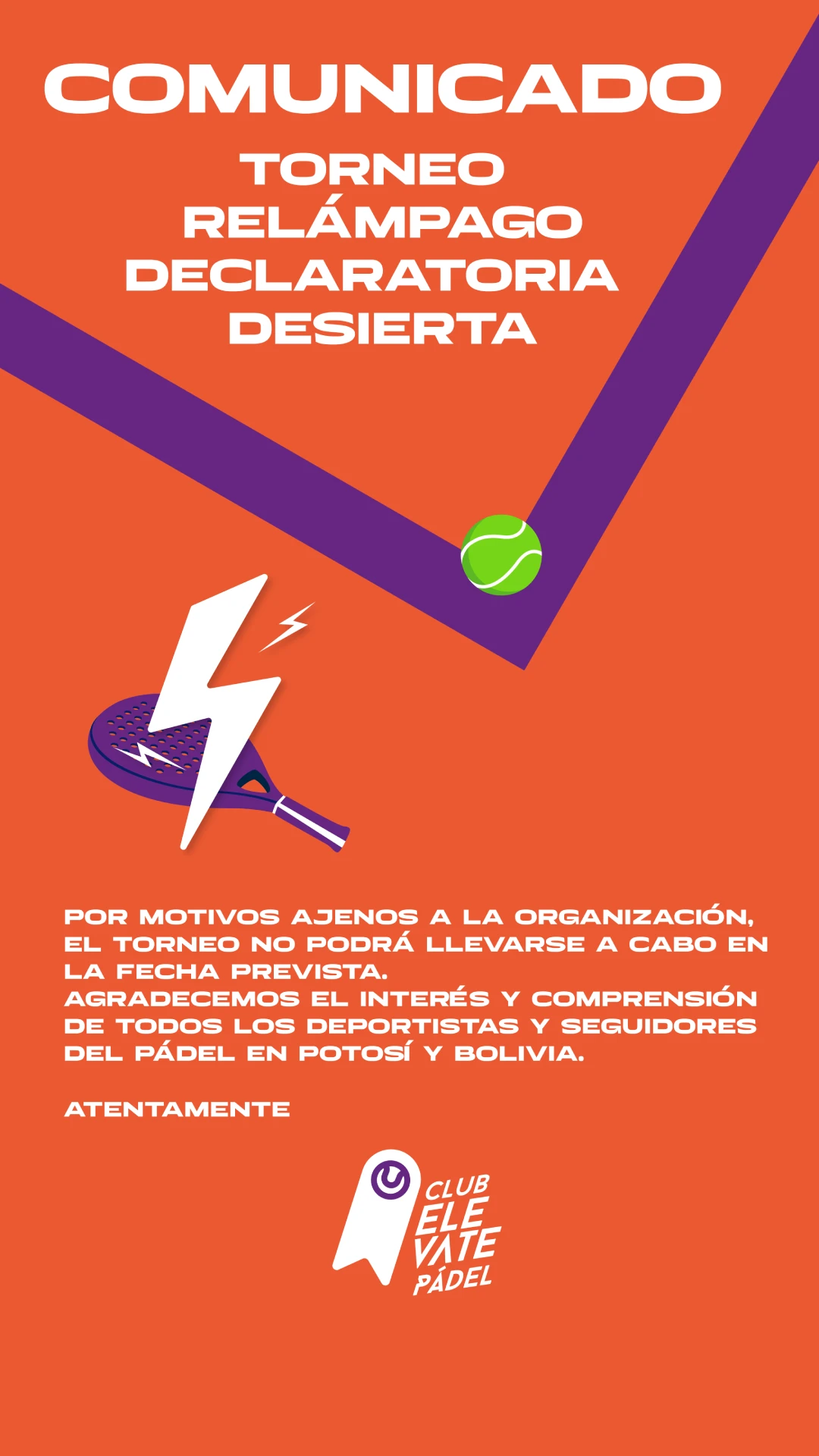 Club Elevate Pádel Potosí es una institución deportiva joven y comprometida con el desarrollo del pádel en nuestra ciudad. Nuestro propósito es promover esta disciplina, fomentando valores como el trabajo en equipo, la disciplina y el bienestar físico, además de impulsar la participación de jóvenes talentos y consolidar eventos que enriquezcan la vida deportiva y social de Potosí.